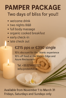 Are you in need of a peaceful escape from the daily hustle and bustle? Treat yourself or a loved one to the ultimate relaxation experience at Robin Hill House, where comfort meets tranquility in the heart of Cobh, Co. Cork.
